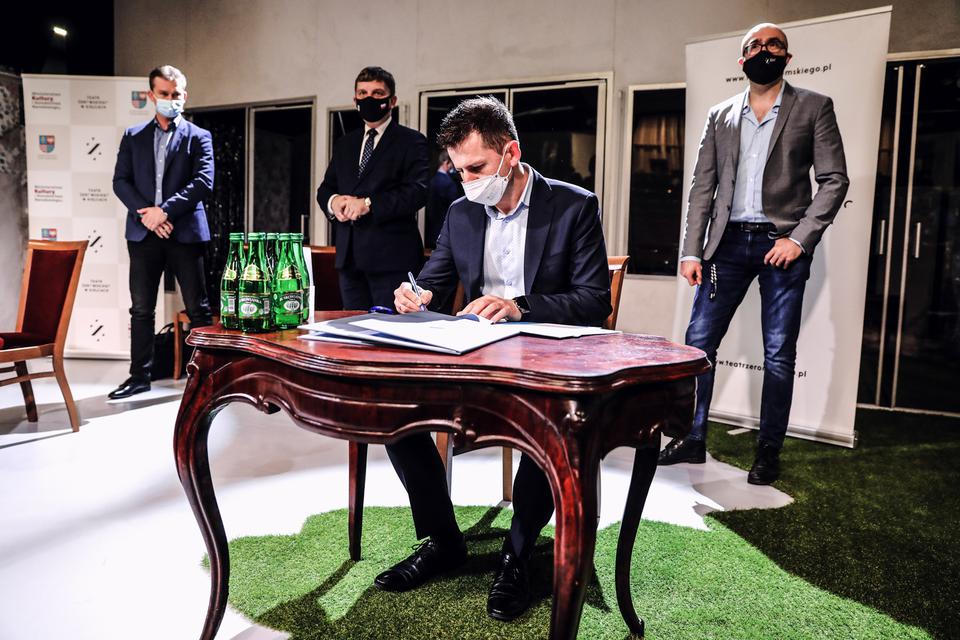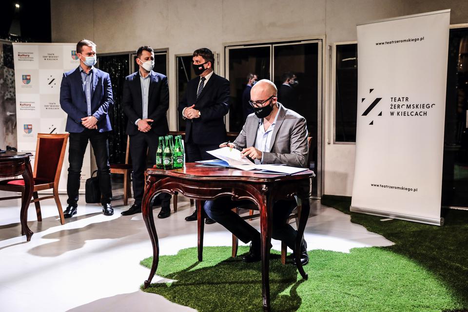On the 4th of February 2021 Theatre signed the contract with the company Anna Bud – the contractor of the rebuilding the historical building. The document was signed by: the manager of the Theatre Michał Kotański, president of Anna Bud Artur Bławat, as well as by the Agent and Director for realization Jarosław Ziętal. The Chairman of the Regional Council of Świętokrzyskie region was present.