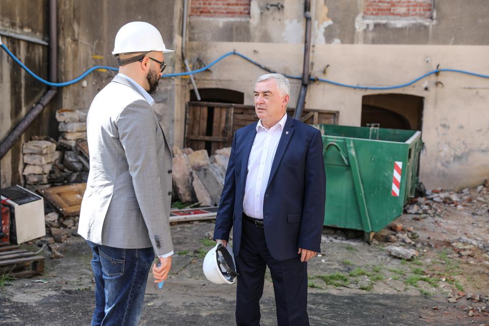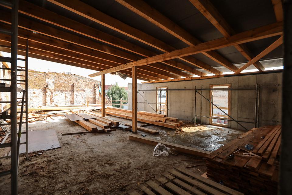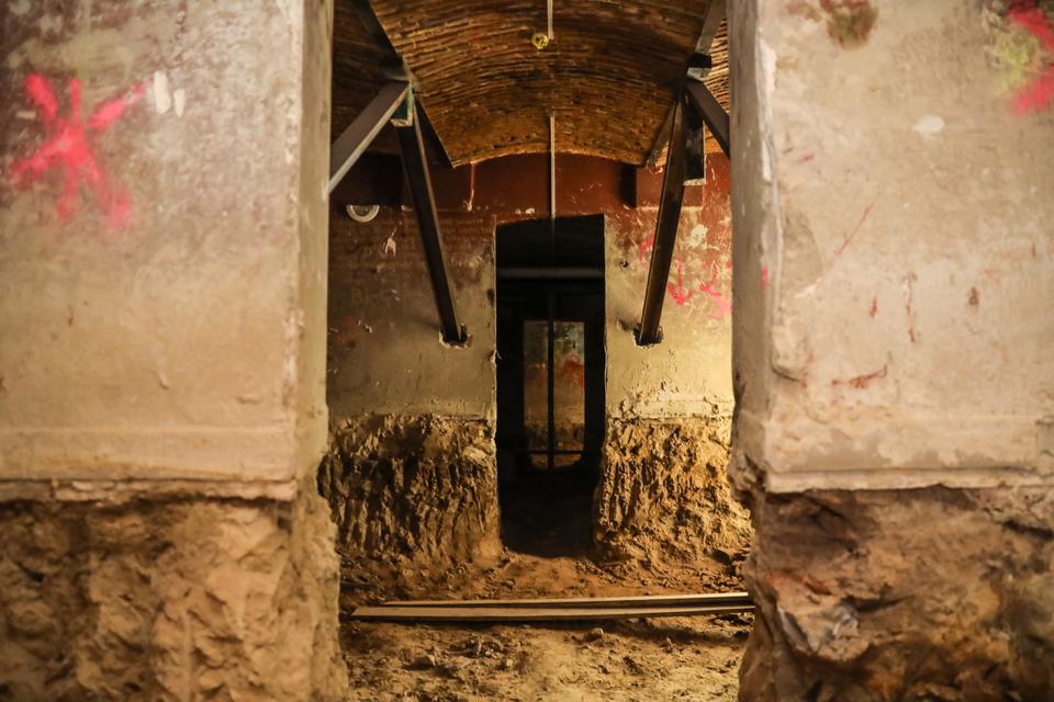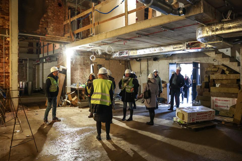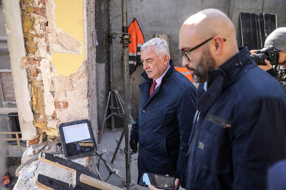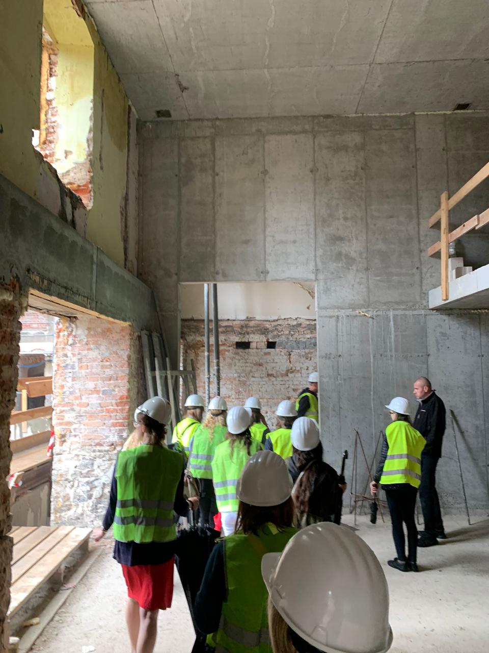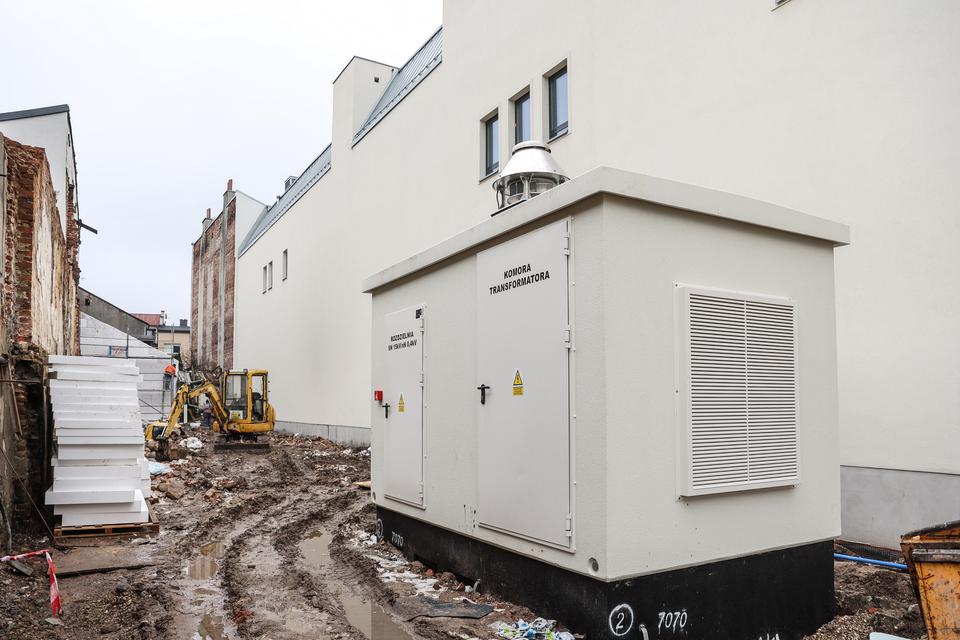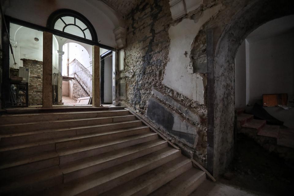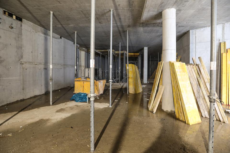 The first building works and advanced demolition works are being done at the construction site in 32 Sienkiewicza street. Installation and freight elevator were deconstructed. Disassembly of window frames and doors is taking place, as well as demolition of some partition walls and lining. Liquidation holes are being immured and walls are being strengthened. The ceilings in the main building are also being prepared for demolition.