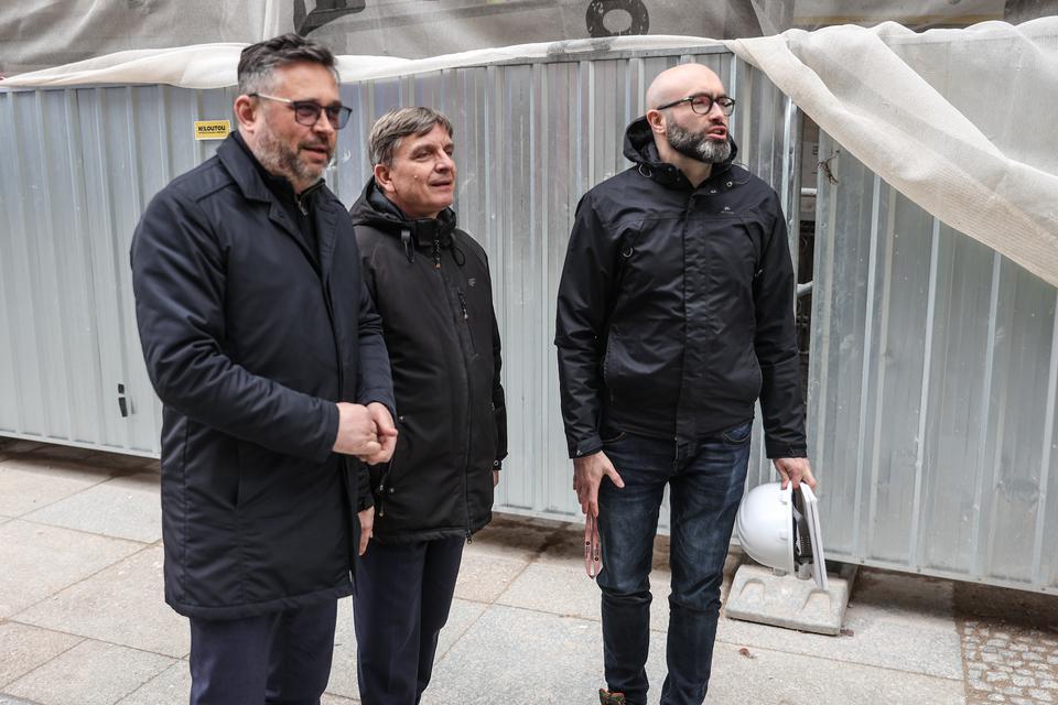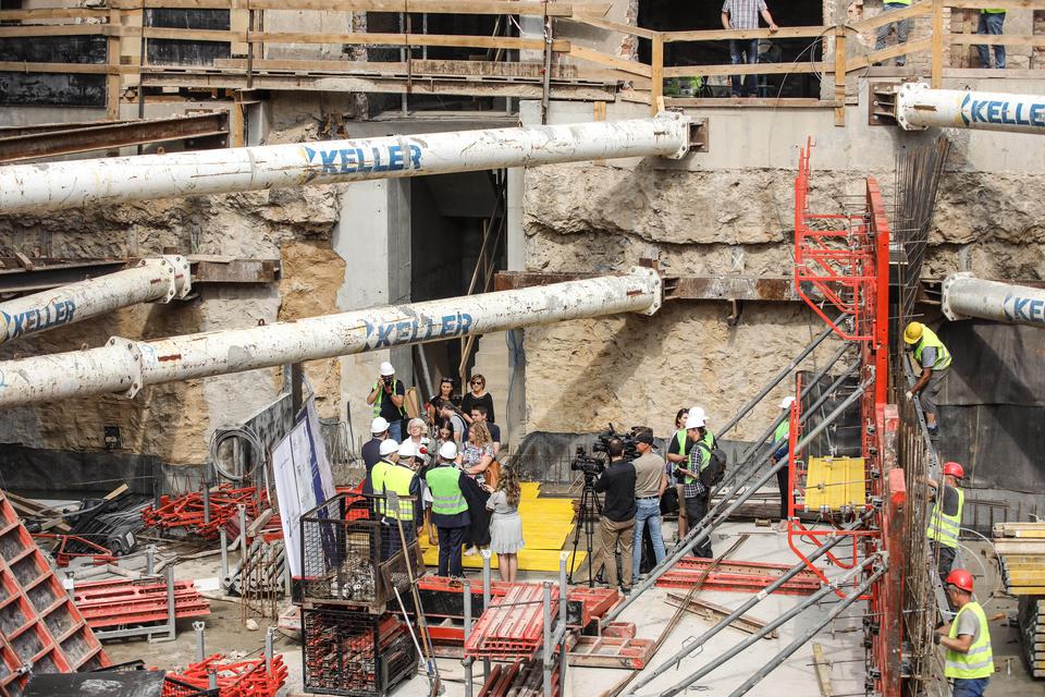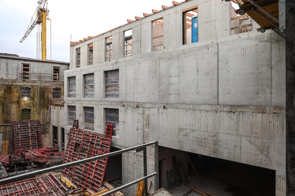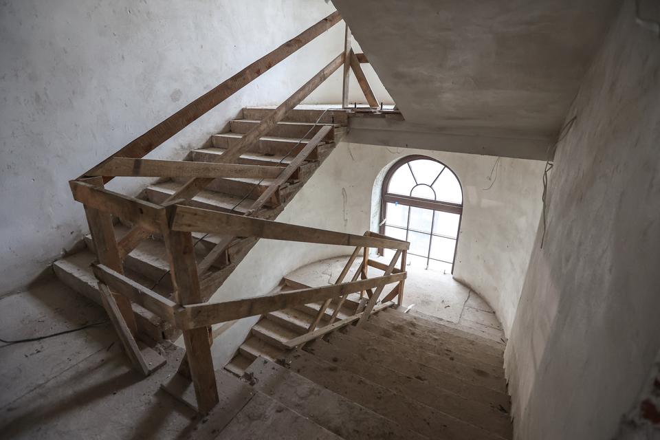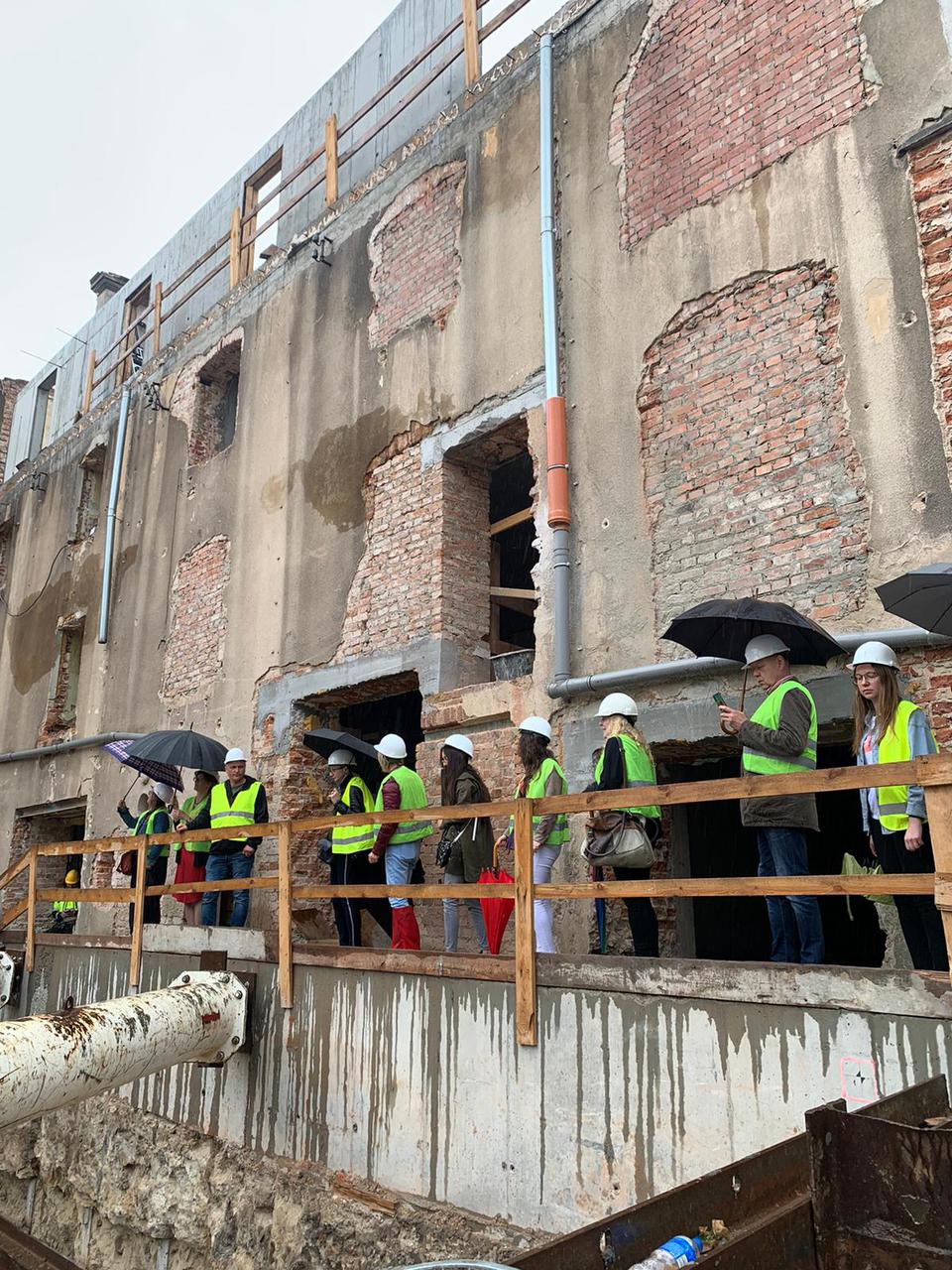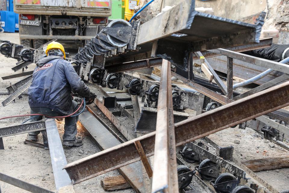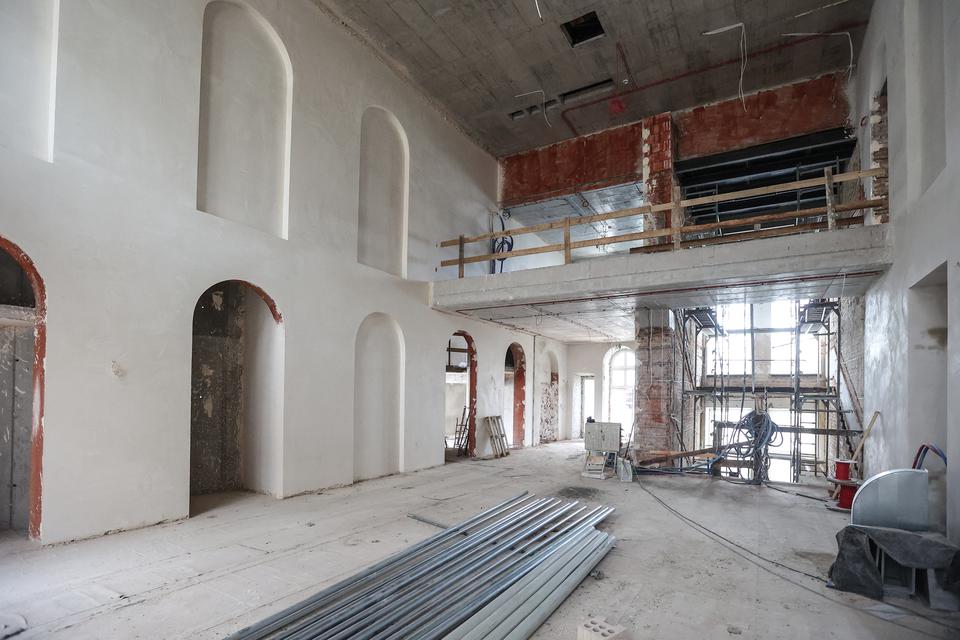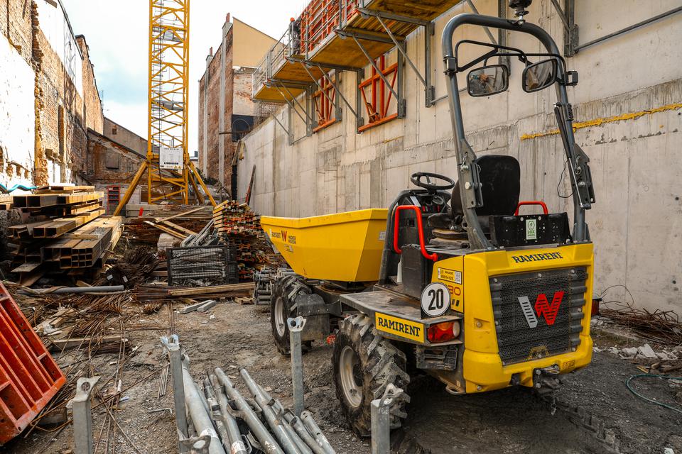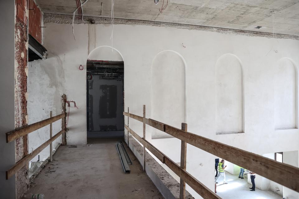 The first building works and advanced demolition works are being done at the construction site in 32 Sienkiewicza street. Installation and freight elevator were deconstructed. Disassembly of window frames and doors is taking place, as well as demolition of some partition walls and lining. Liquidation holes are being immured and walls are being strengthened. The ceilings in the main building are also being prepared for demolition.
