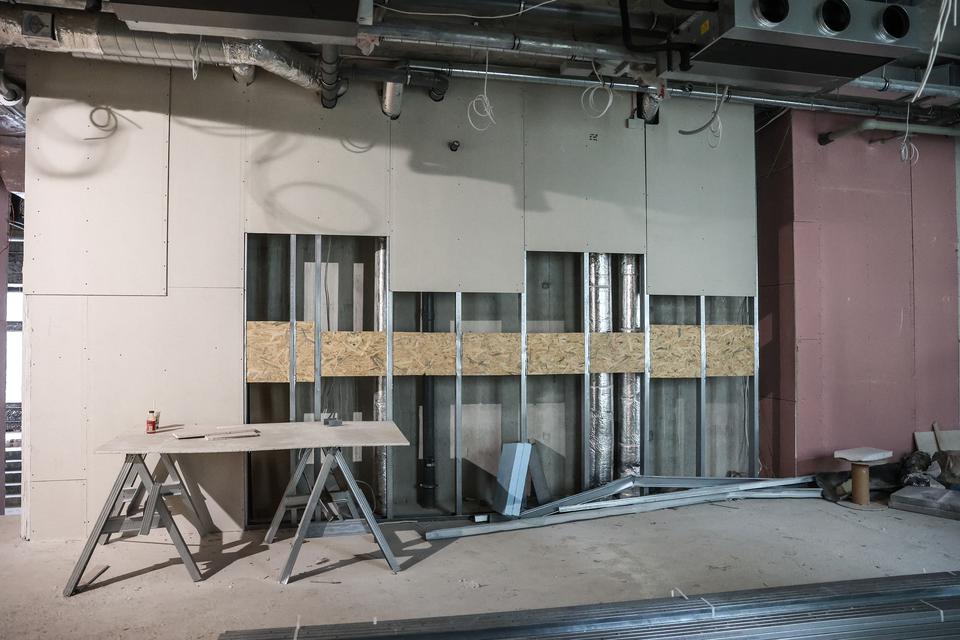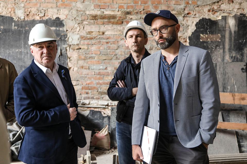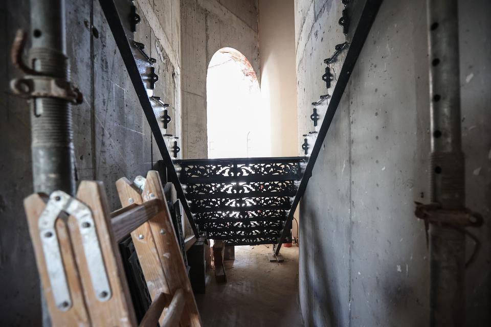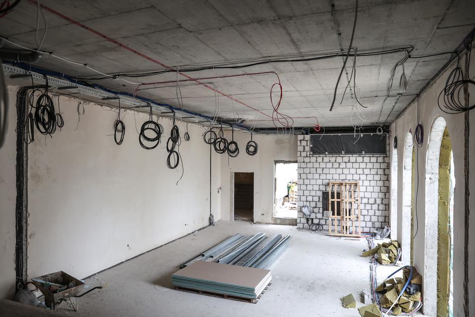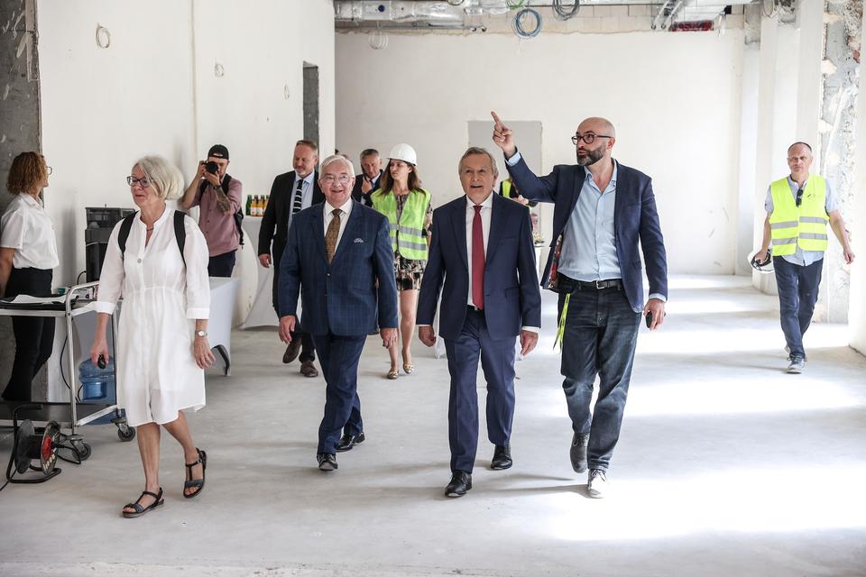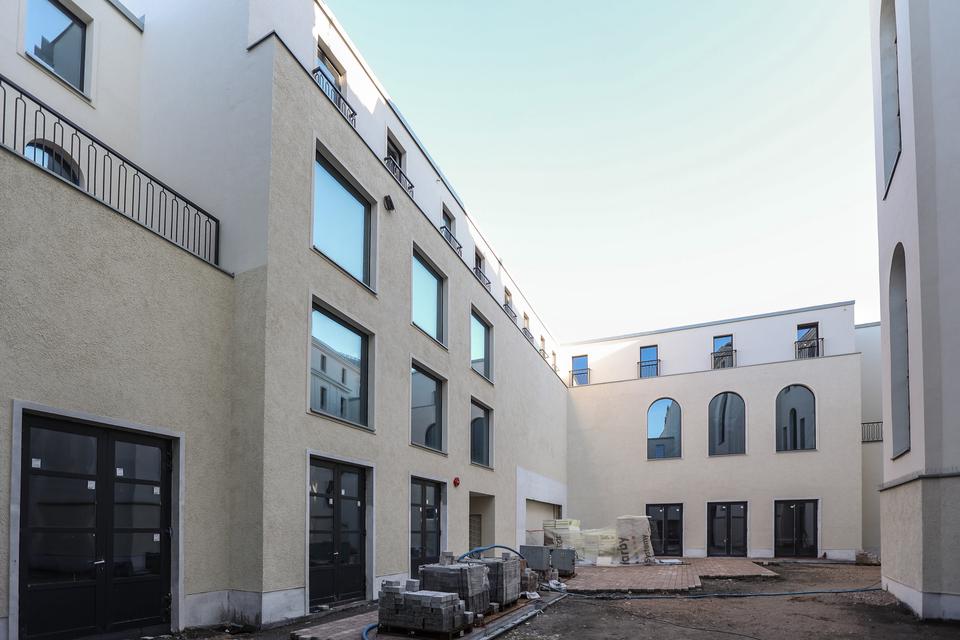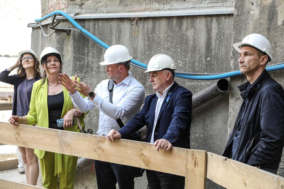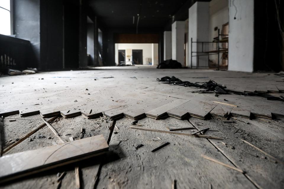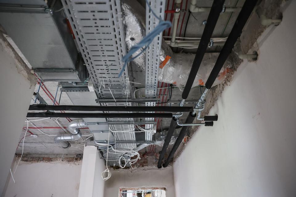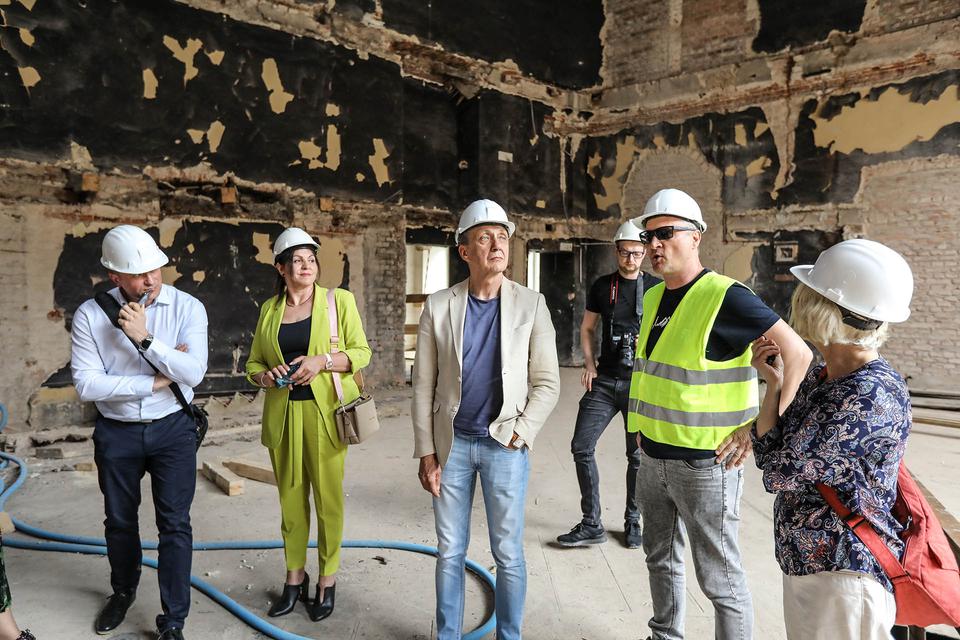 The first building works and advanced demolition works are being done at the construction site in 32 Sienkiewicza street. Installation and freight elevator were deconstructed. Disassembly of window frames and doors is taking place, as well as demolition of some partition walls and lining. Liquidation holes are being immured and walls are being strengthened. The ceilings in the main building are also being prepared for demolition.