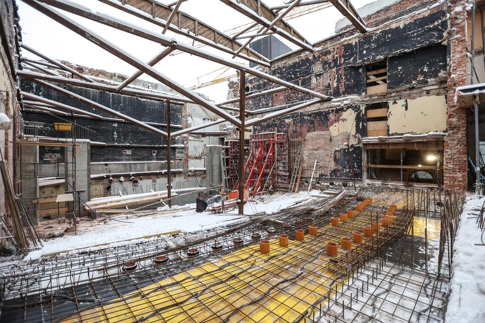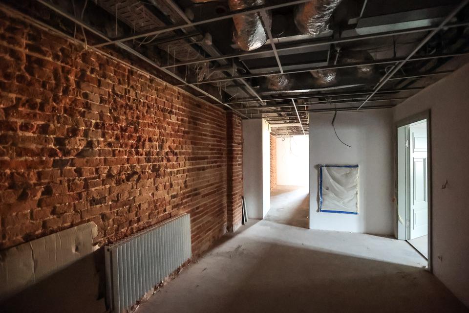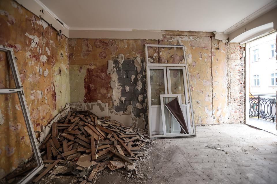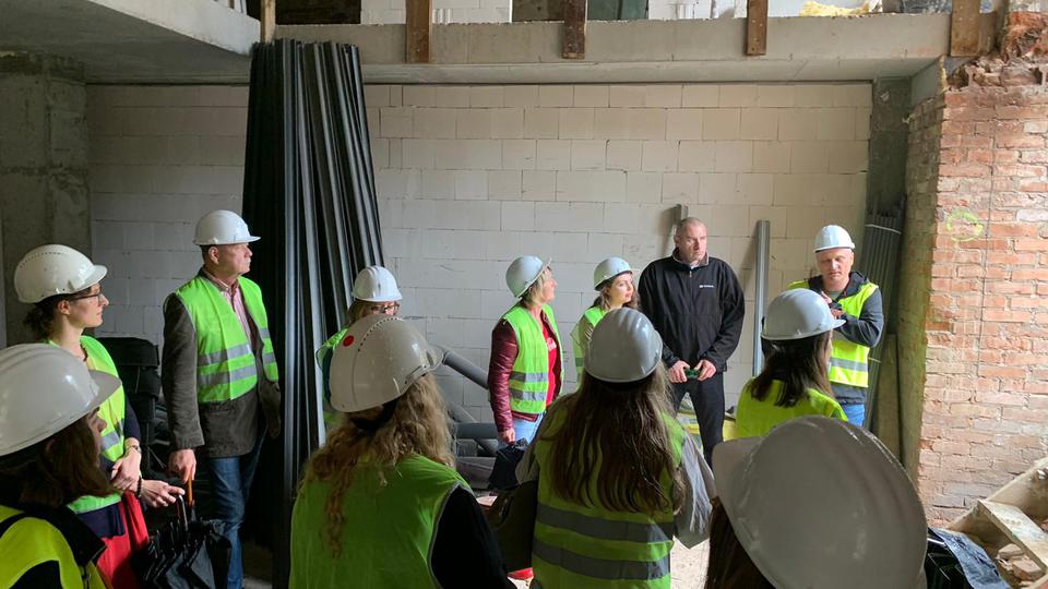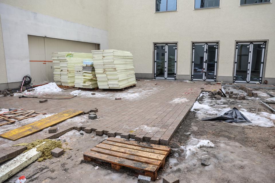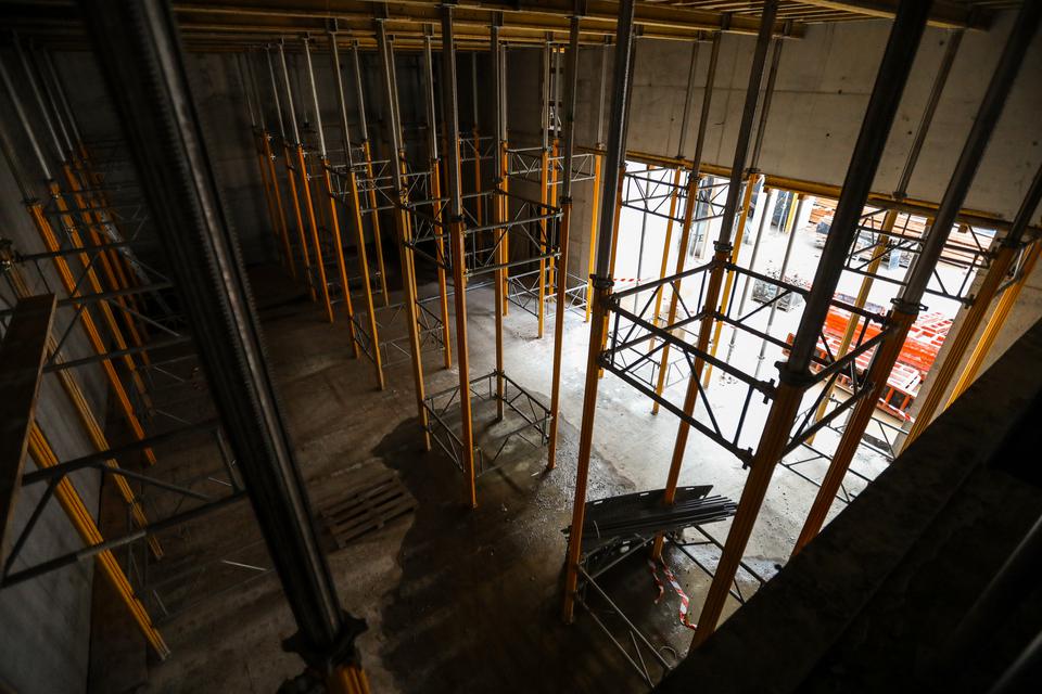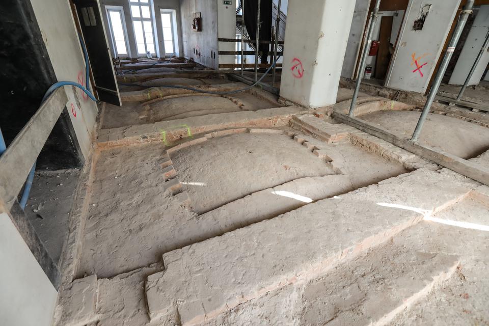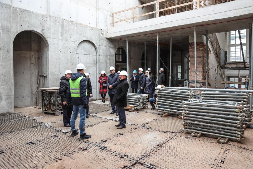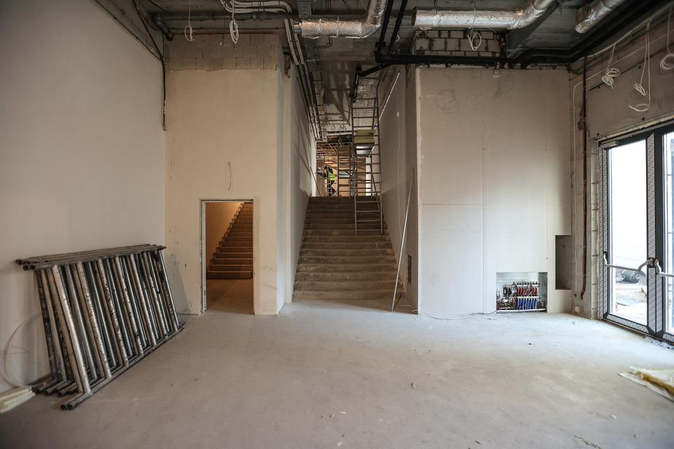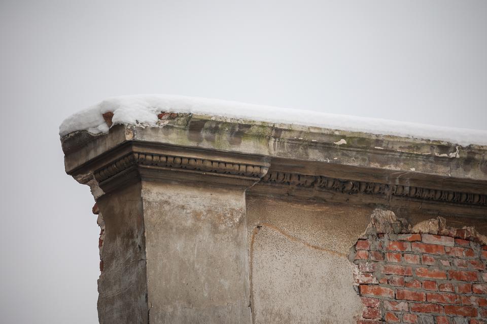 The first building works and advanced demolition works are being done at the construction site in 32 Sienkiewicza street. Installation and freight elevator were deconstructed. Disassembly of window frames and doors is taking place, as well as demolition of some partition walls and lining. Liquidation holes are being immured and walls are being strengthened. The ceilings in the main building are also being prepared for demolition.