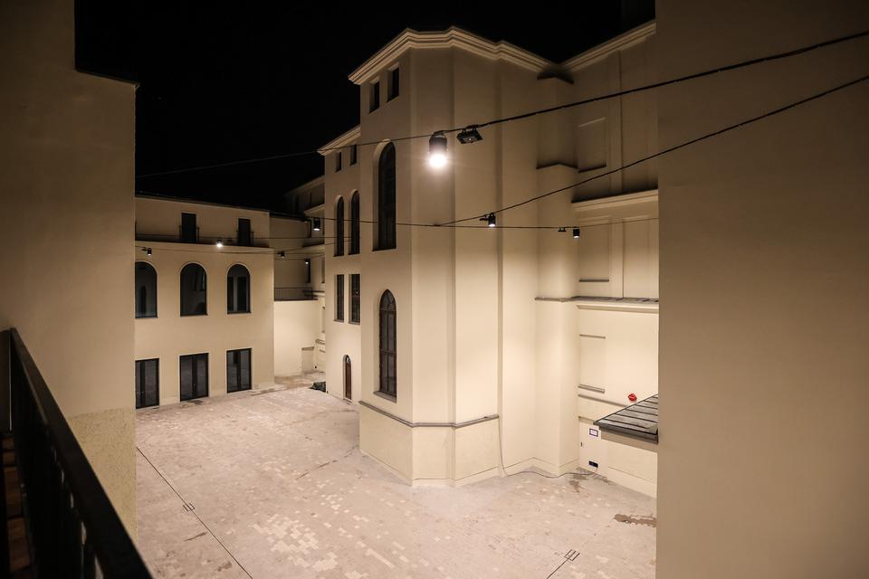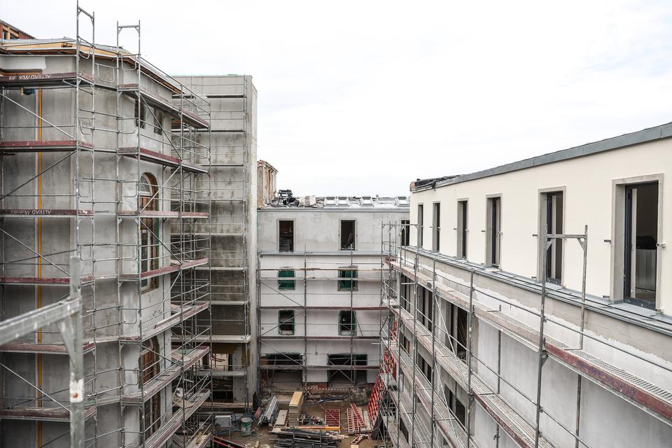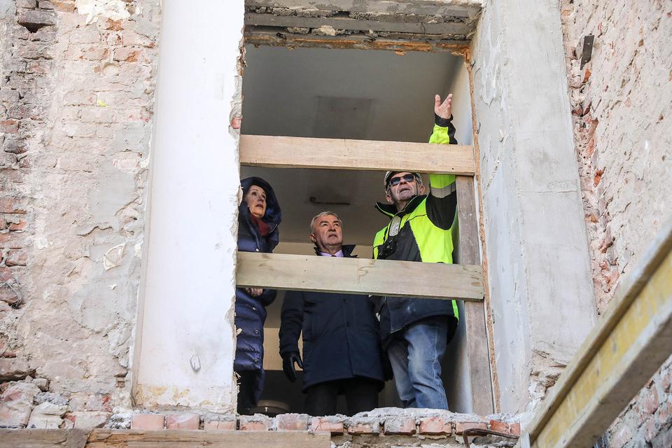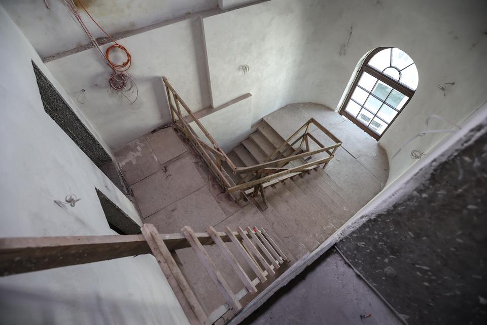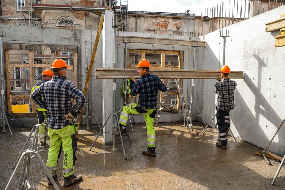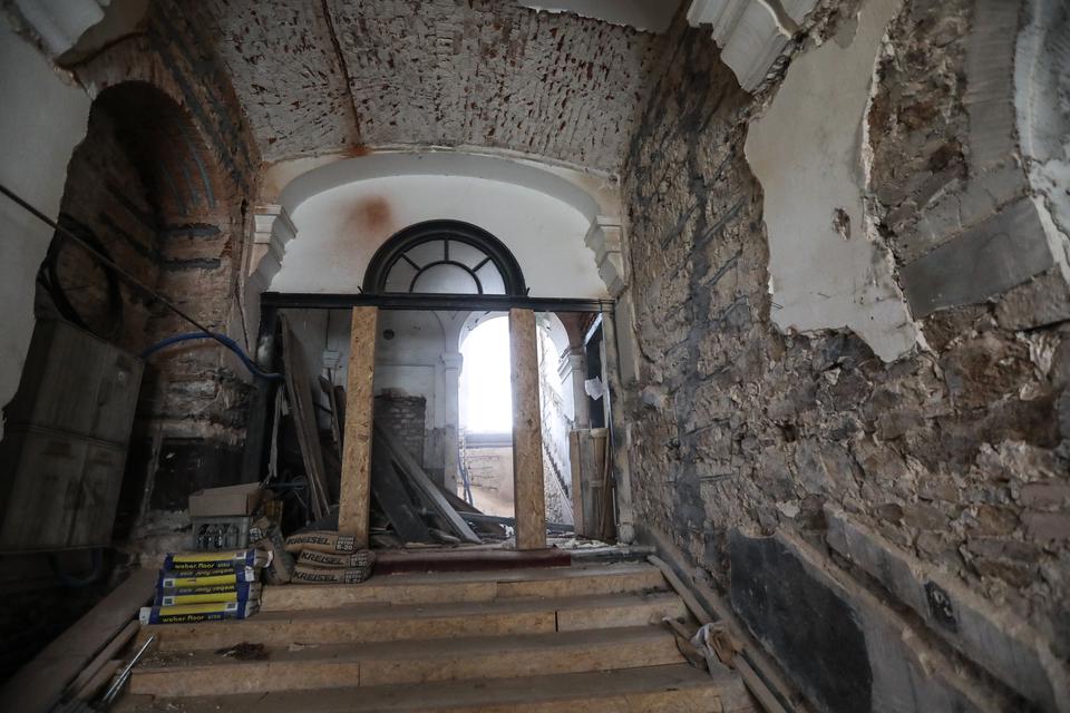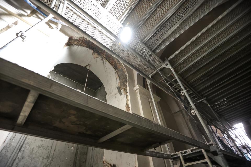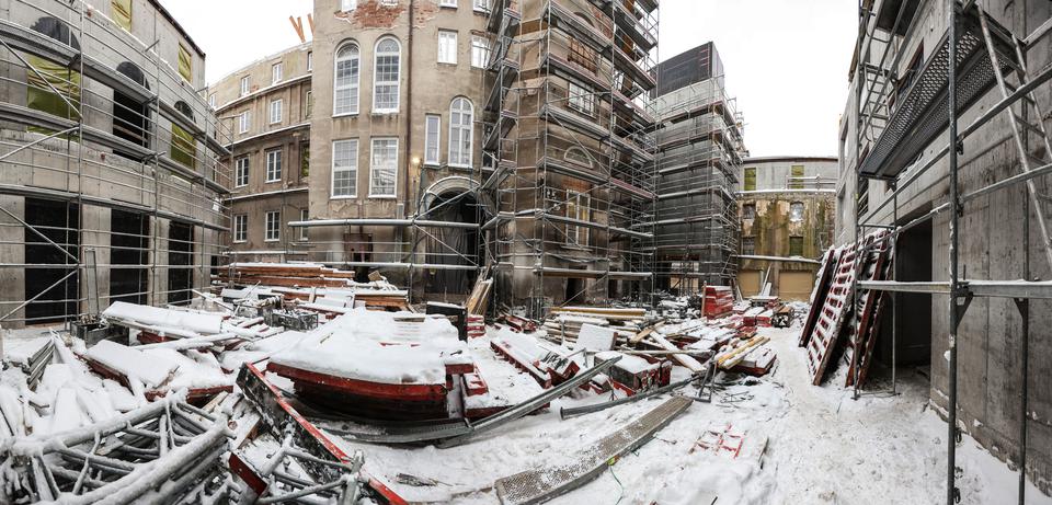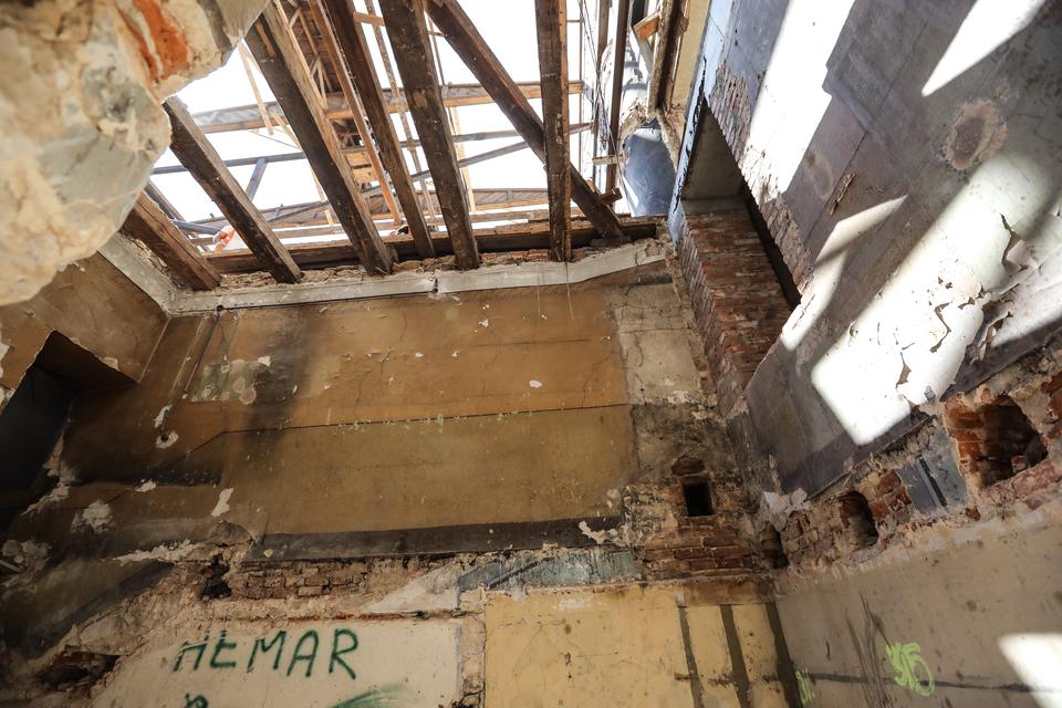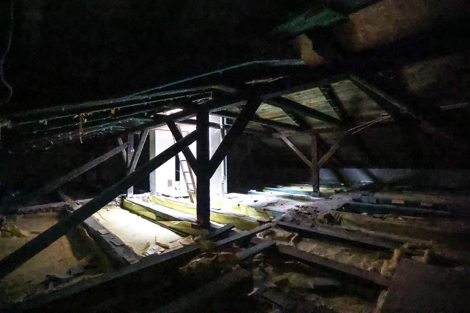 The first building works and advanced demolition works are being done at the construction site in 32 Sienkiewicza street. Installation and freight elevator were deconstructed. Disassembly of window frames and doors is taking place, as well as demolition of some partition walls and lining. Liquidation holes are being immured and walls are being strengthened. The ceilings in the main building are also being prepared for demolition.