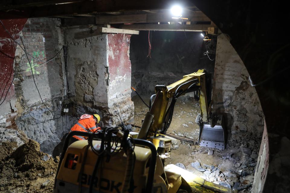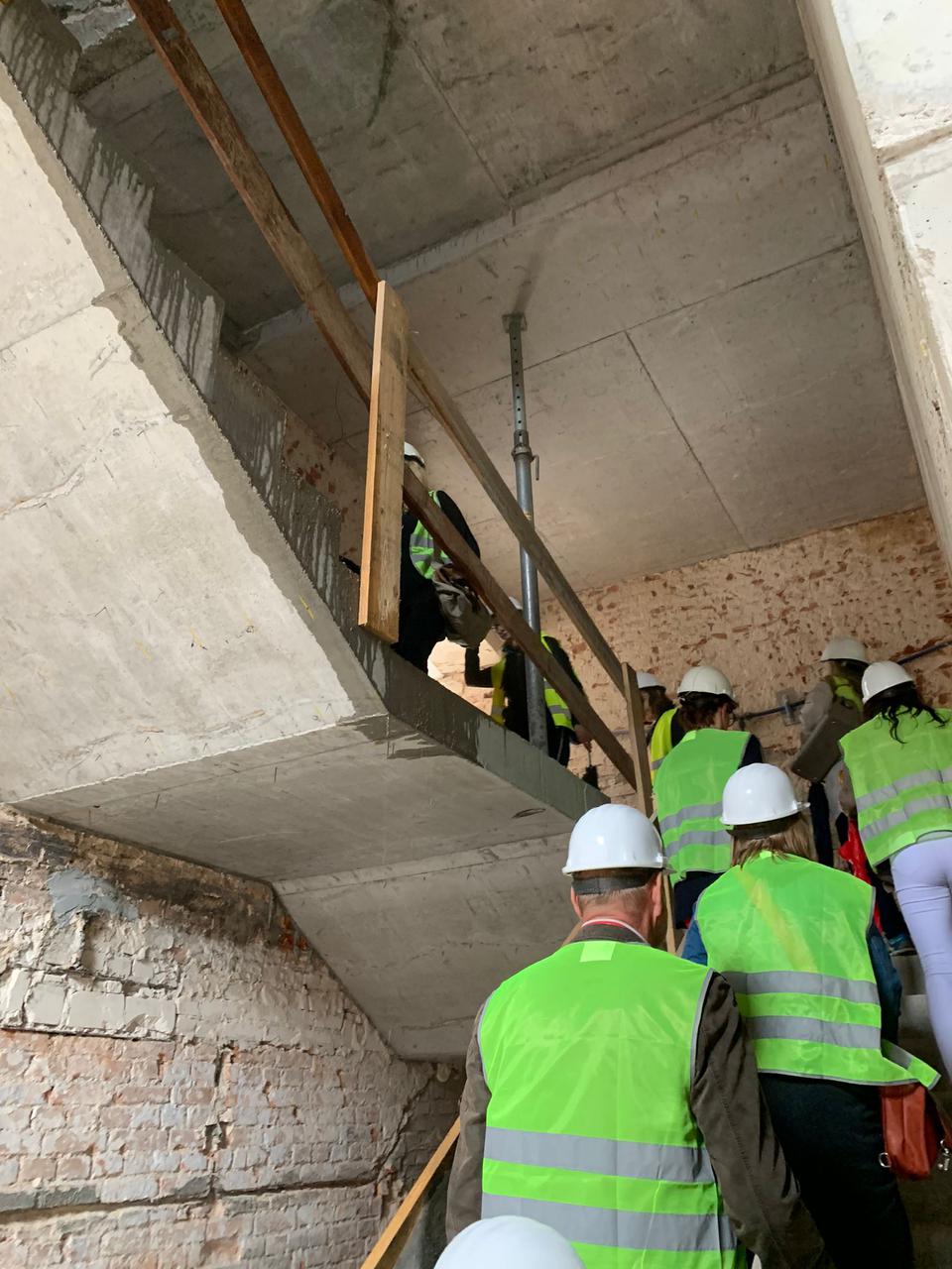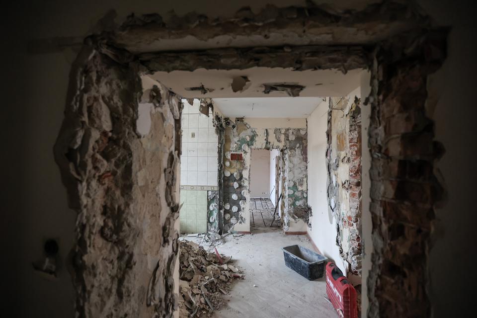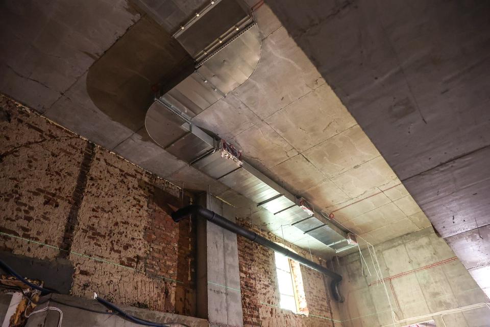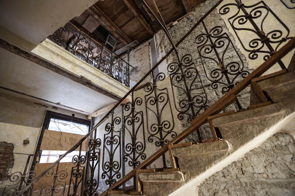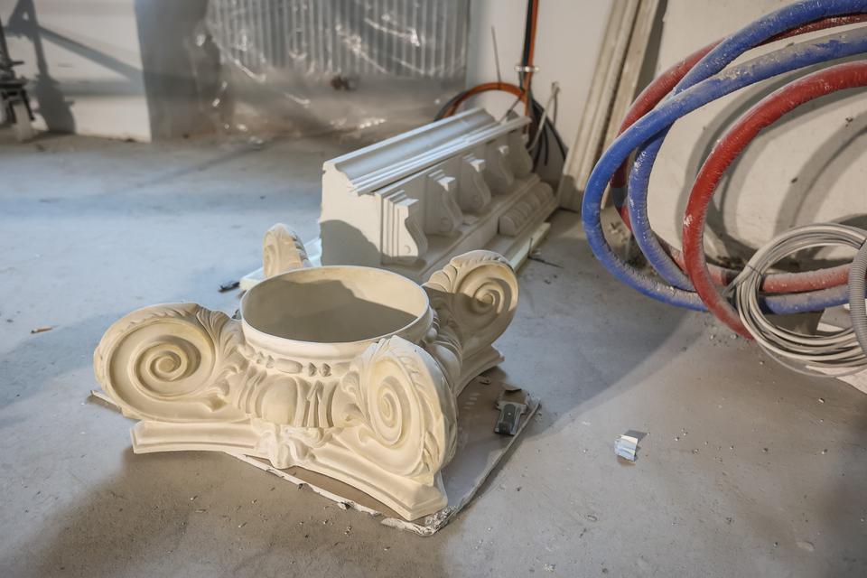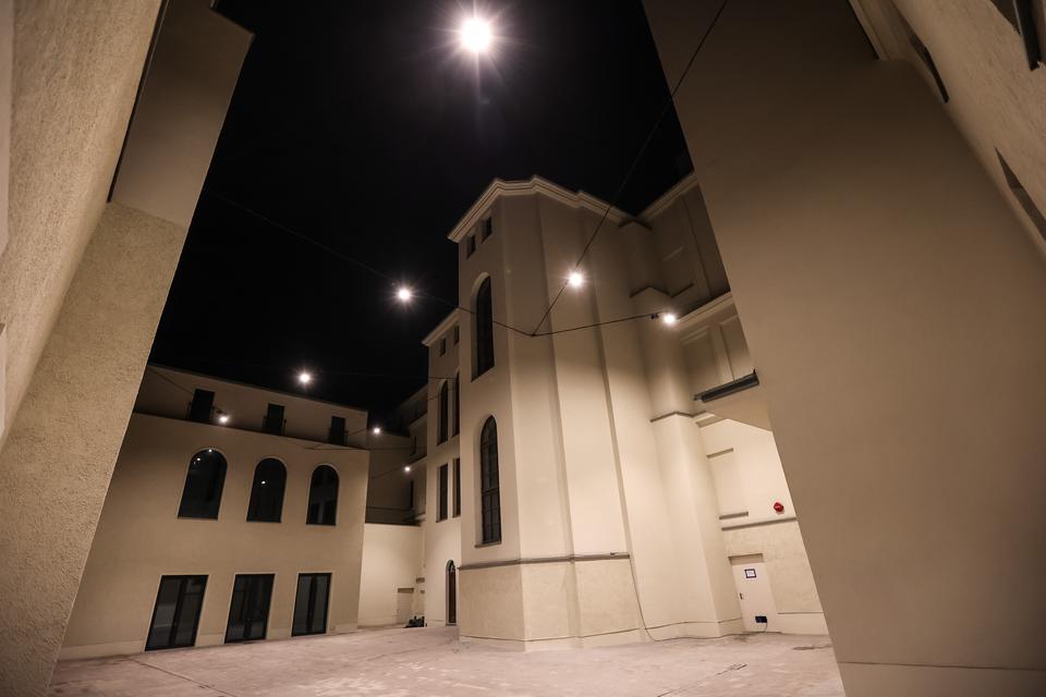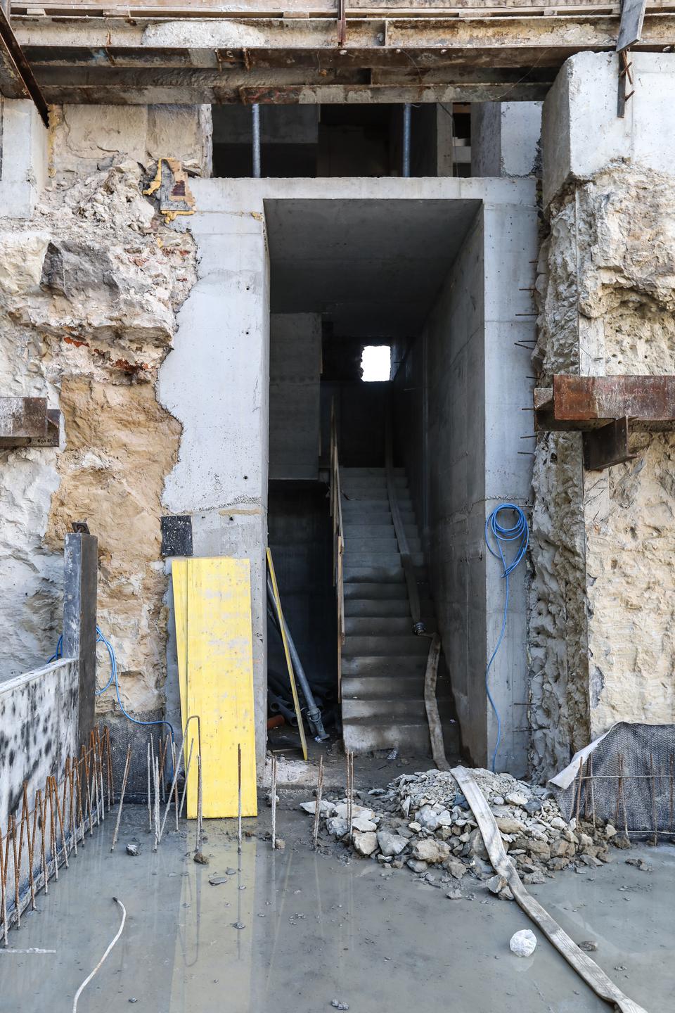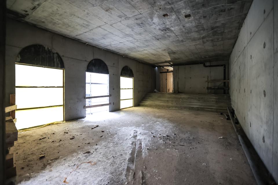 The first building works and advanced demolition works are being done at the construction site in 32 Sienkiewicza street. Installation and freight elevator were deconstructed. Disassembly of window frames and doors is taking place, as well as demolition of some partition walls and lining. Liquidation holes are being immured and walls are being strengthened. The ceilings in the main building are also being prepared for demolition.