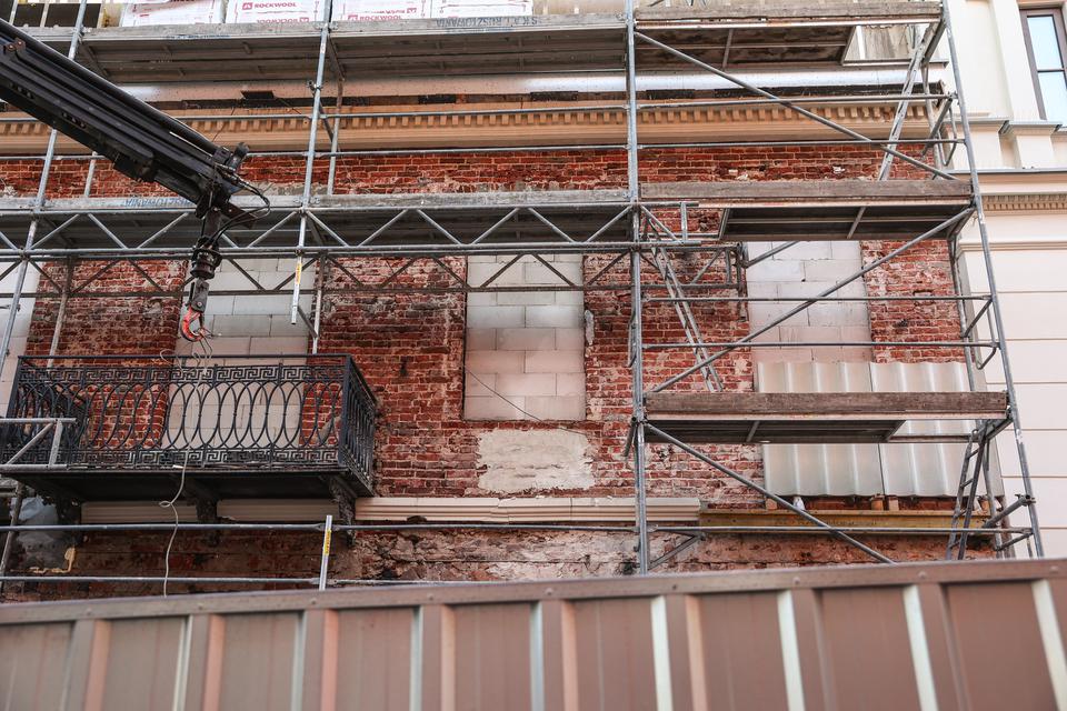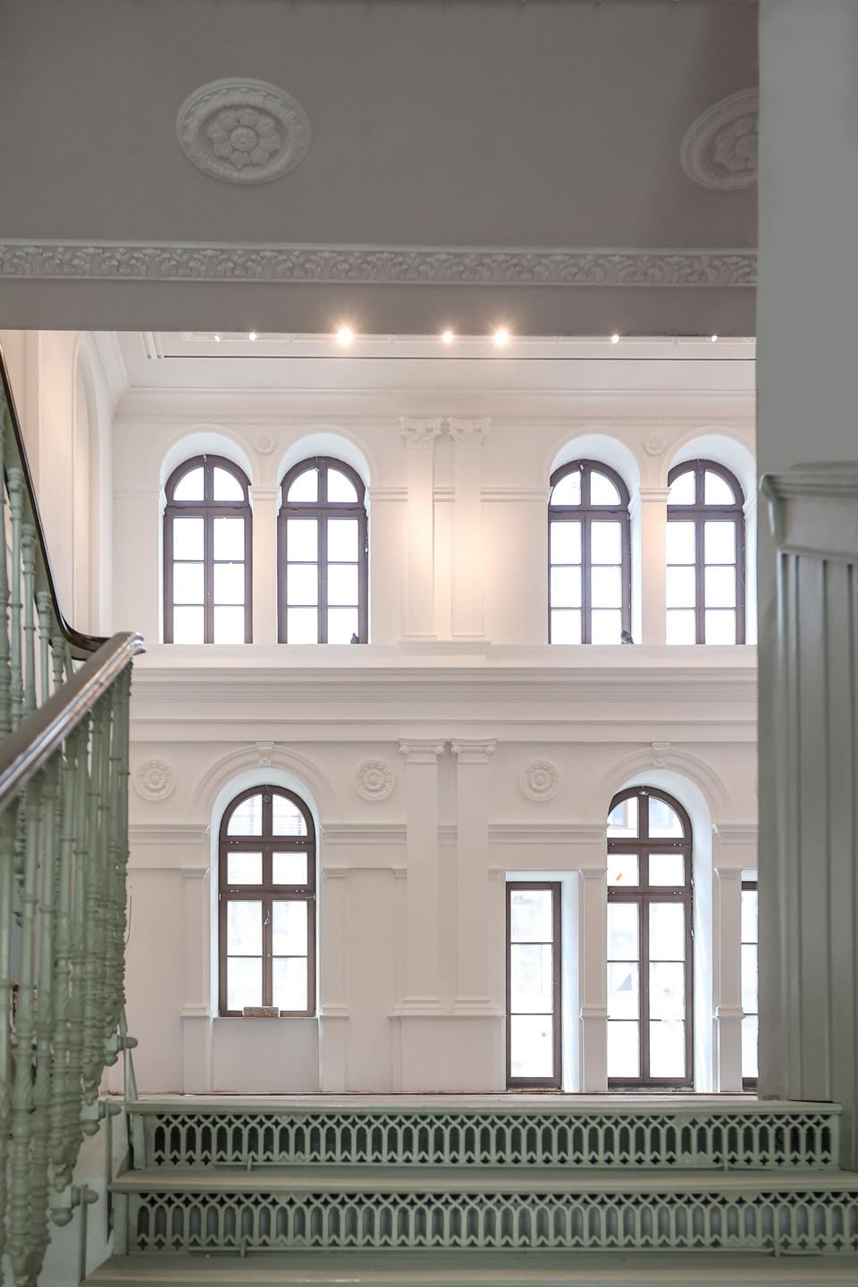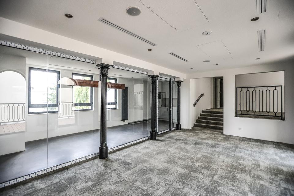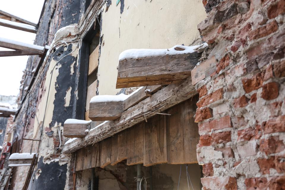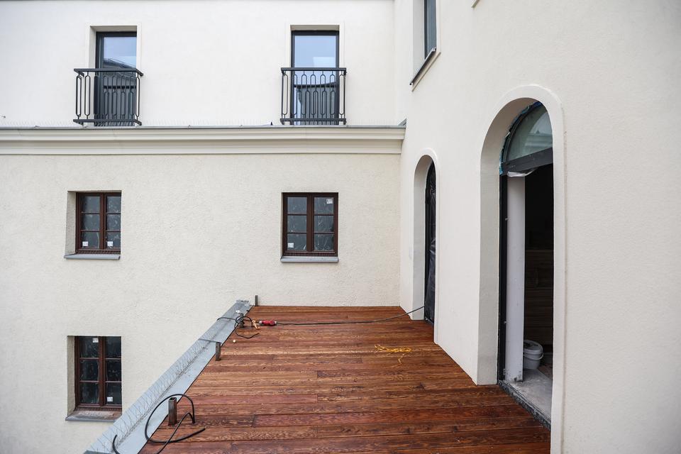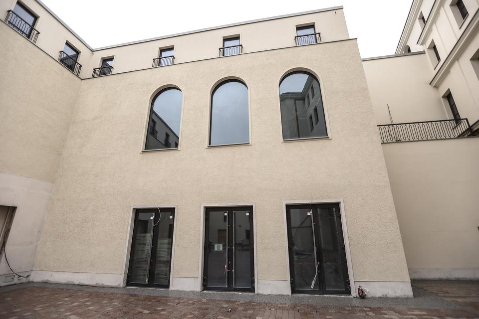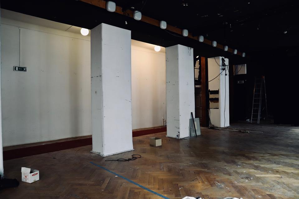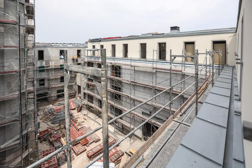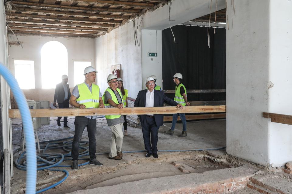 The first building works and advanced demolition works are being done at the construction site in 32 Sienkiewicza street. Installation and freight elevator were deconstructed. Disassembly of window frames and doors is taking place, as well as demolition of some partition walls and lining. Liquidation holes are being immured and walls are being strengthened. The ceilings in the main building are also being prepared for demolition.