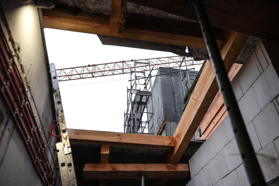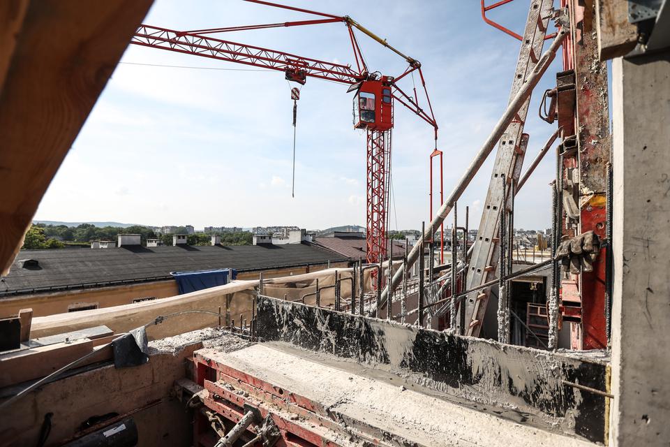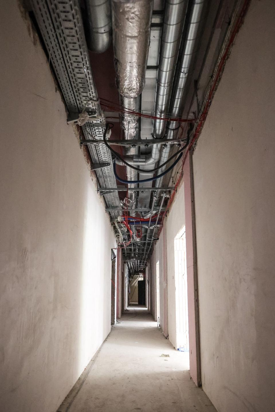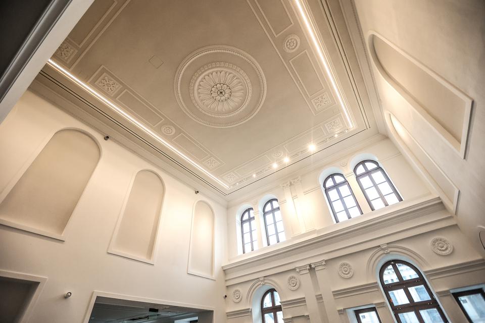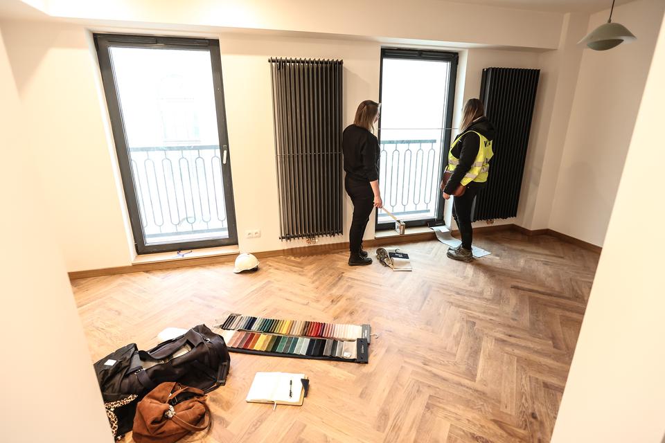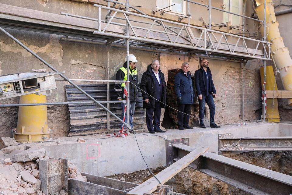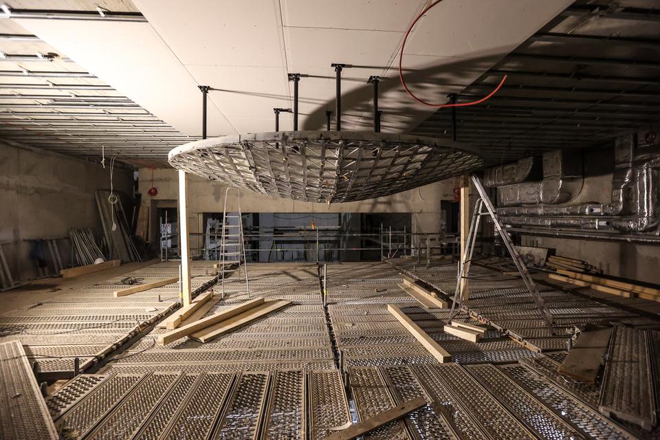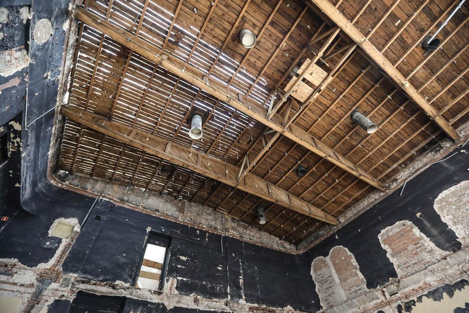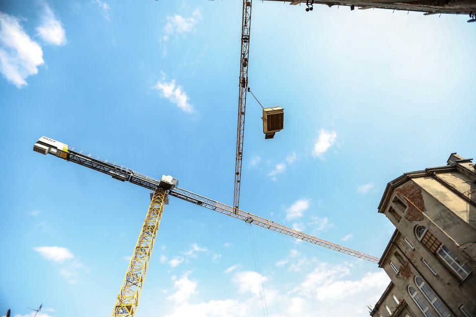 The first building works and advanced demolition works are being done at the construction site in 32 Sienkiewicza street. Installation and freight elevator were deconstructed. Disassembly of window frames and doors is taking place, as well as demolition of some partition walls and lining. Liquidation holes are being immured and walls are being strengthened. The ceilings in the main building are also being prepared for demolition.