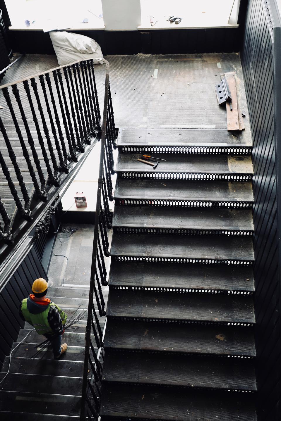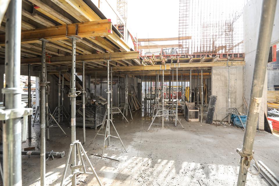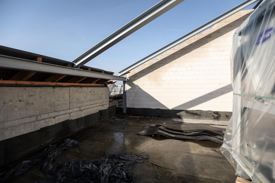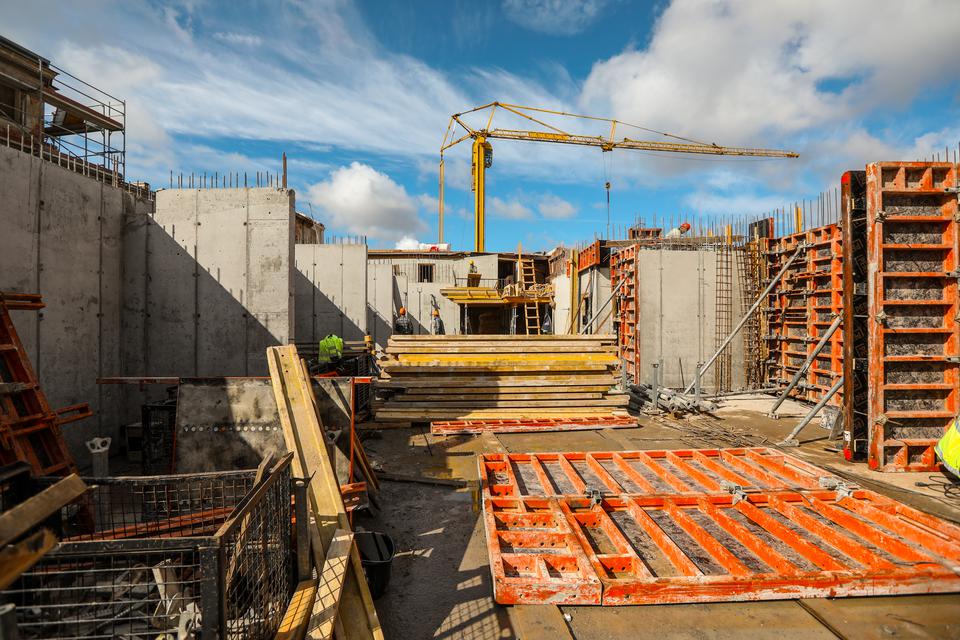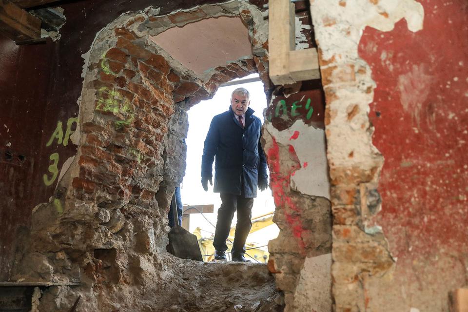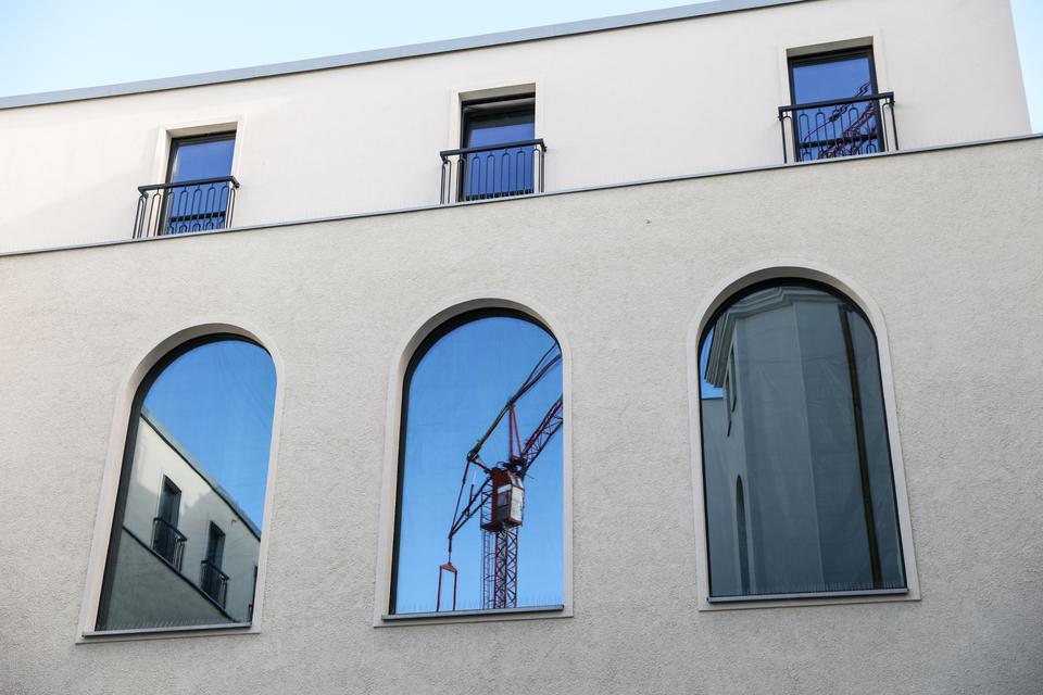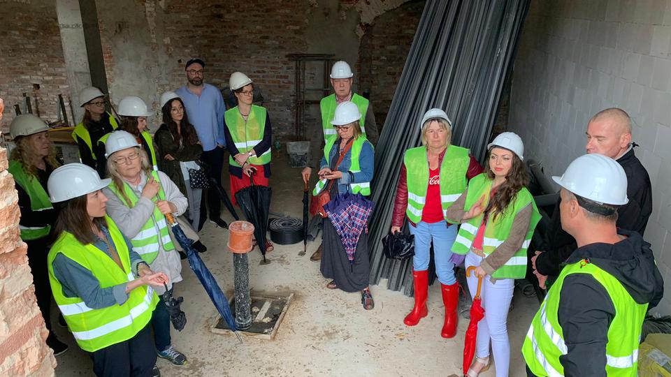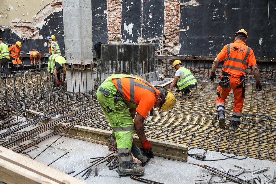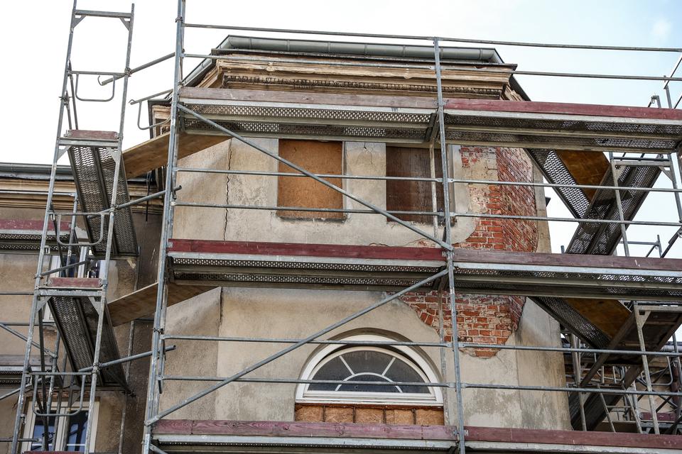 The first building works and advanced demolition works are being done at the construction site in 32 Sienkiewicza street. Installation and freight elevator were deconstructed. Disassembly of window frames and doors is taking place, as well as demolition of some partition walls and lining. Liquidation holes are being immured and walls are being strengthened. The ceilings in the main building are also being prepared for demolition.