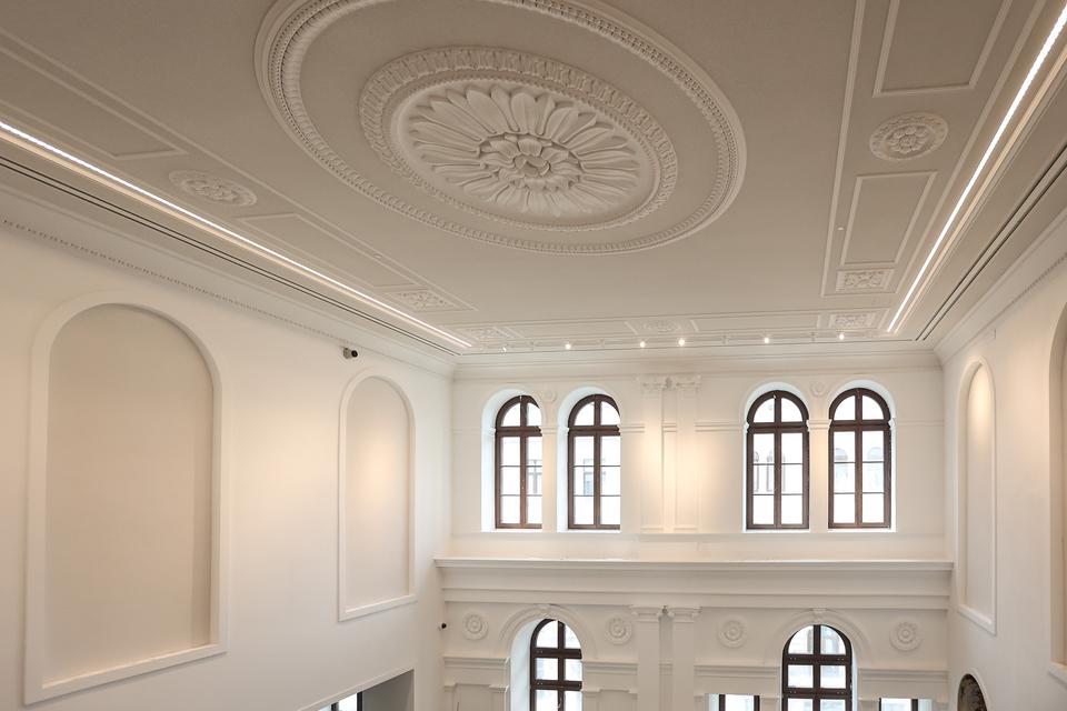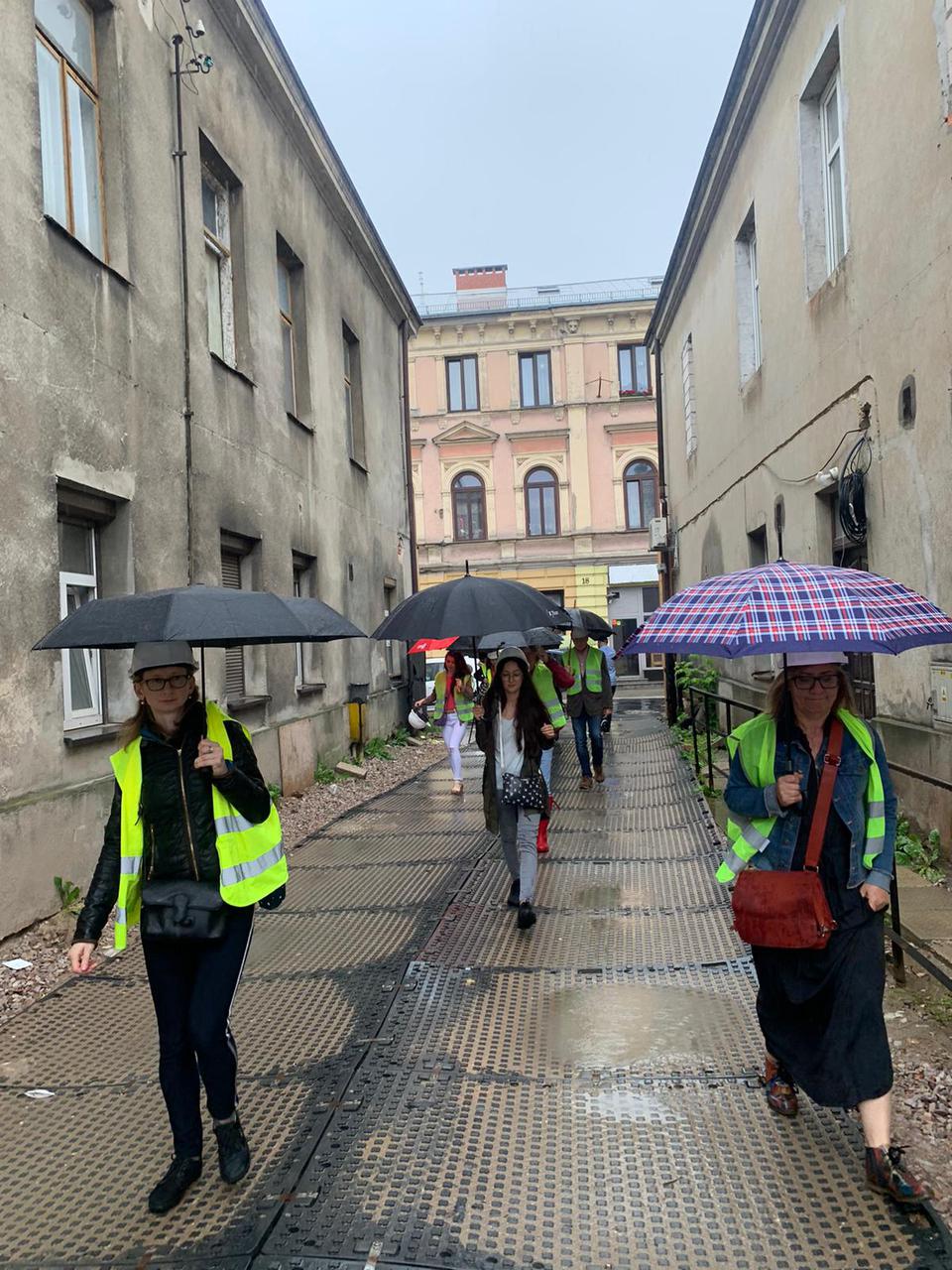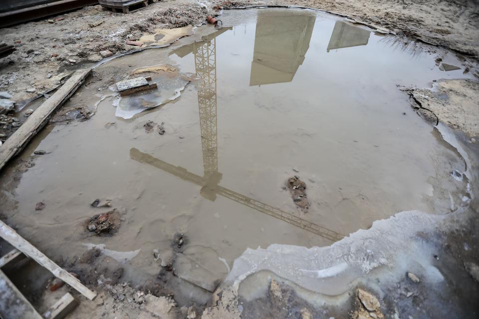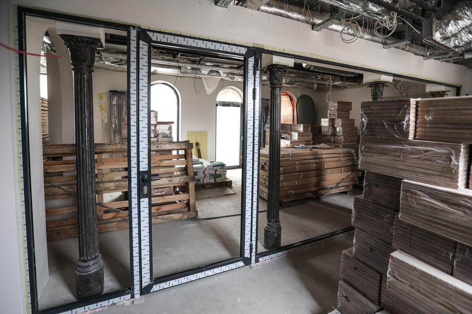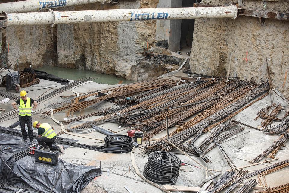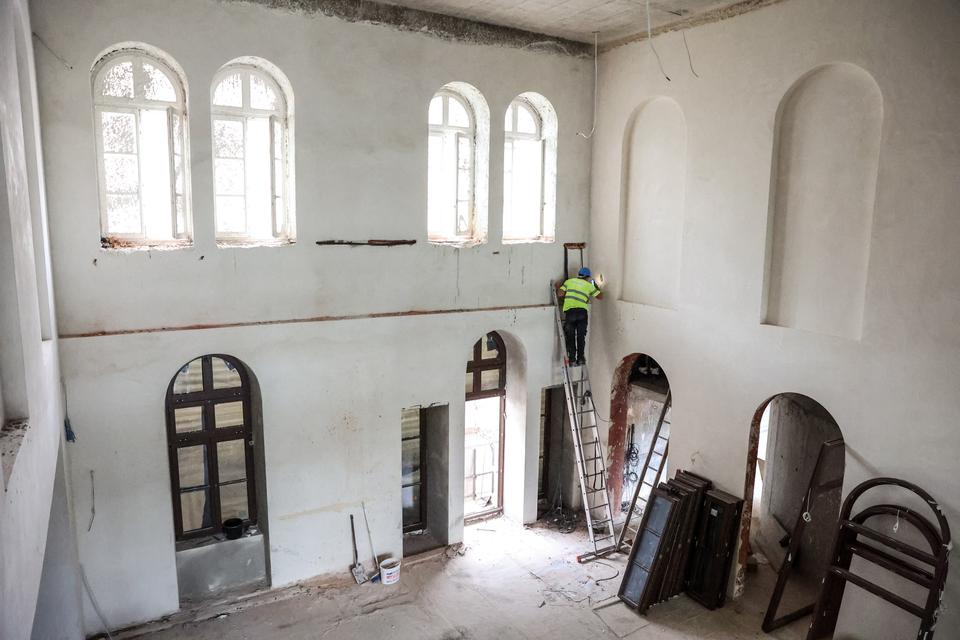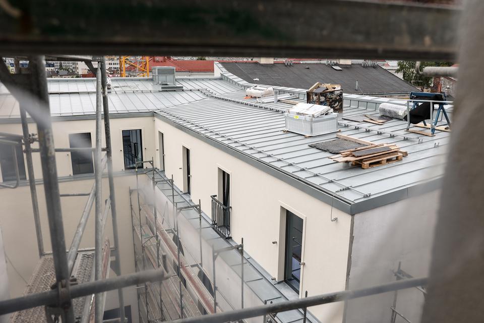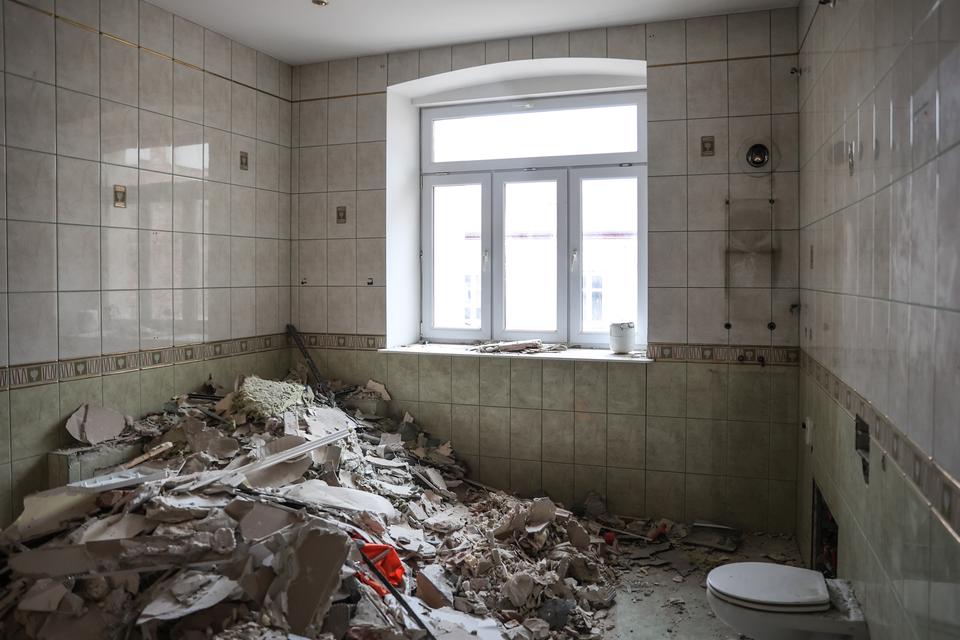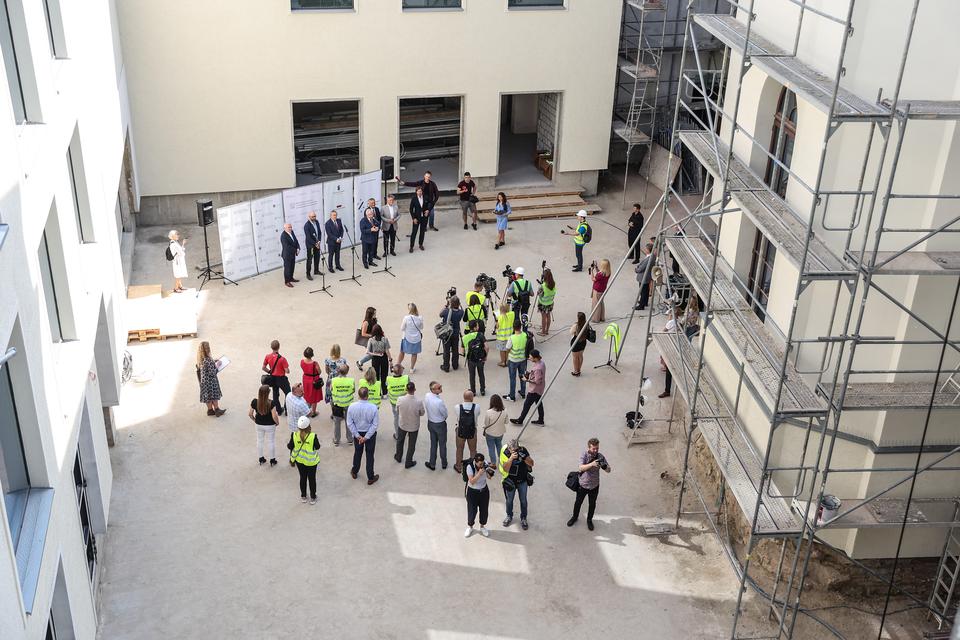 The first building works and advanced demolition works are being done at the construction site in 32 Sienkiewicza street. Installation and freight elevator were deconstructed. Disassembly of window frames and doors is taking place, as well as demolition of some partition walls and lining. Liquidation holes are being immured and walls are being strengthened. The ceilings in the main building are also being prepared for demolition.