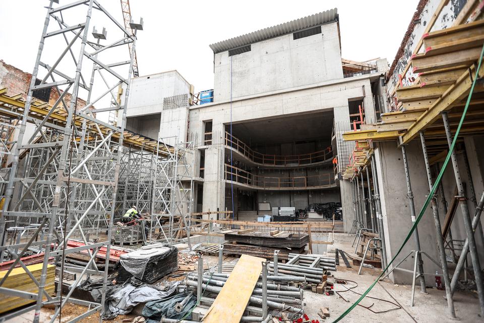 The aim of the task is to expand the investment to include the building of the adjoining tenement house, which will significantly increase the practicality level of the stage and its technological possibilities. The task includes creating a backstage wing, a fly loft enabling hoisting elements of scenery on motorised battens, a two-level system of stage traps, a service lift from the Sienkiewicza Street, stage storages on stage level and in the understage.