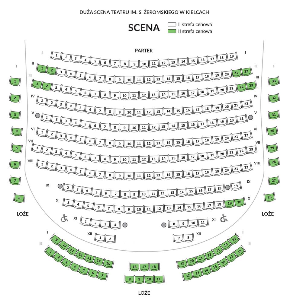 Reduced ticket (pupils, pensioners, students, guardians of the disabled persons) II seats 30 PLN